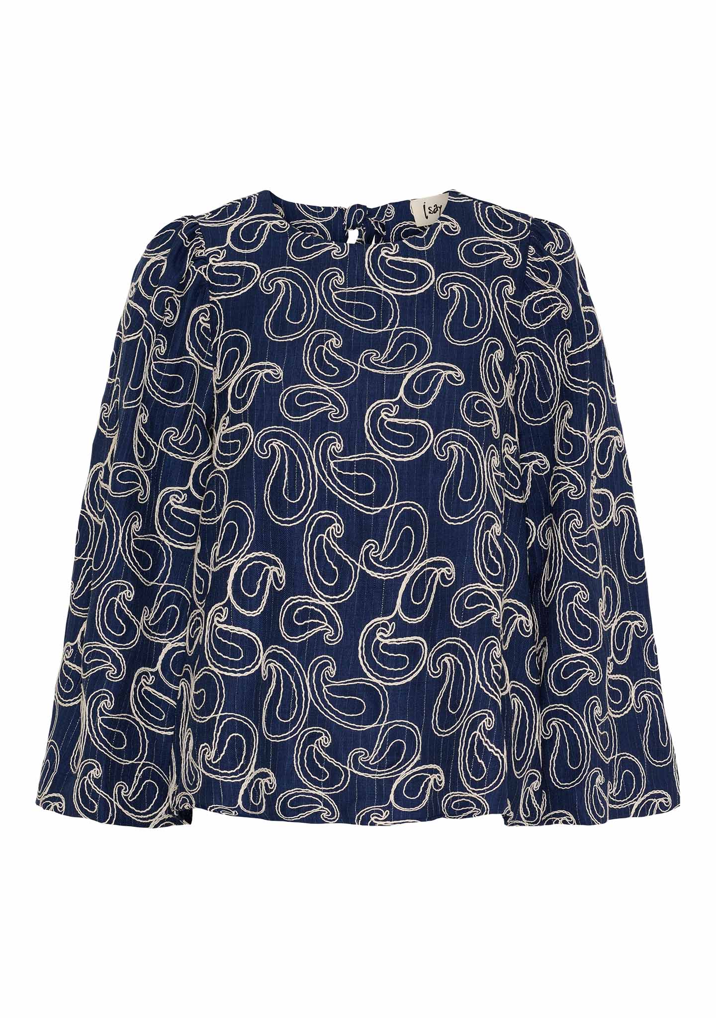 - Blus med rund hals och slits i nacken