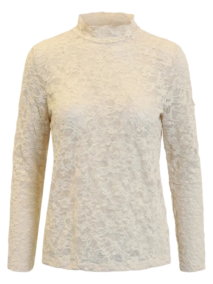 En fin och mjuk spetstopp med en liten stående krage. Toppen är transparant och är mycket fin att ha under en kofta eller väst.