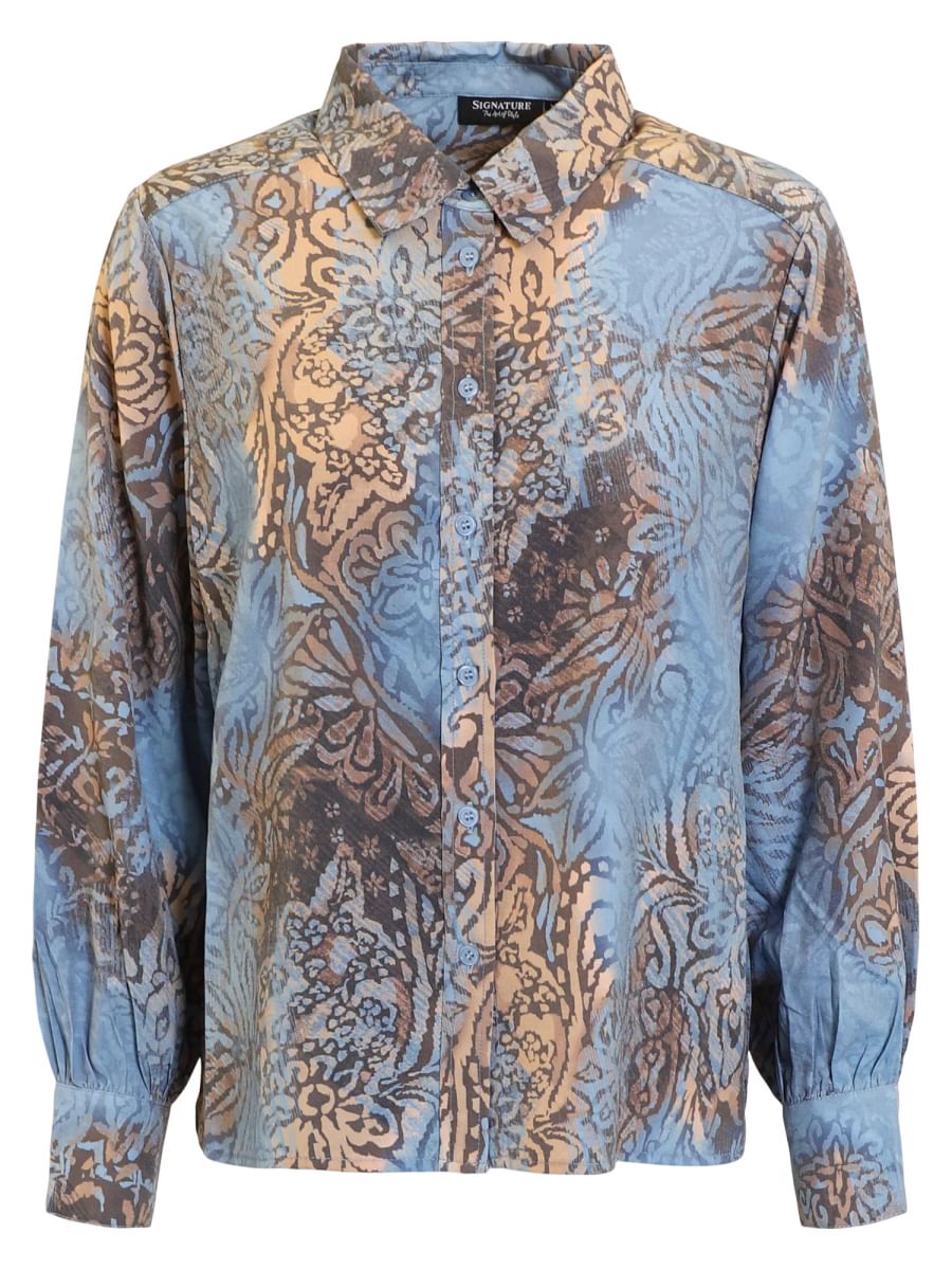 En härligt mönstrad skjorta i en skön kvalitet. Snygg till bruna byxor och även till Jeans.